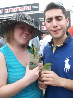 Score! The line was long and I was feeling hot and dizzy from all the cheap beer and the hot sun. When I finally ordered my Julep from some college girl working the tent (totally disappointed), I felt like I was livin’ the southern dream. I took one sip and I knew I was in a whole other league of hard-balling drinkers. They made these Juleps for professionals, not some beer chugging amateur like myself. I was taken aback at how strong this drink was. Traditionally made of bourbon, water, sugar and fresh mint sprigs, the julep isn’t much unlike a Mojito. It was something about that Early Times whiskey that washed over me in the wrong way.
