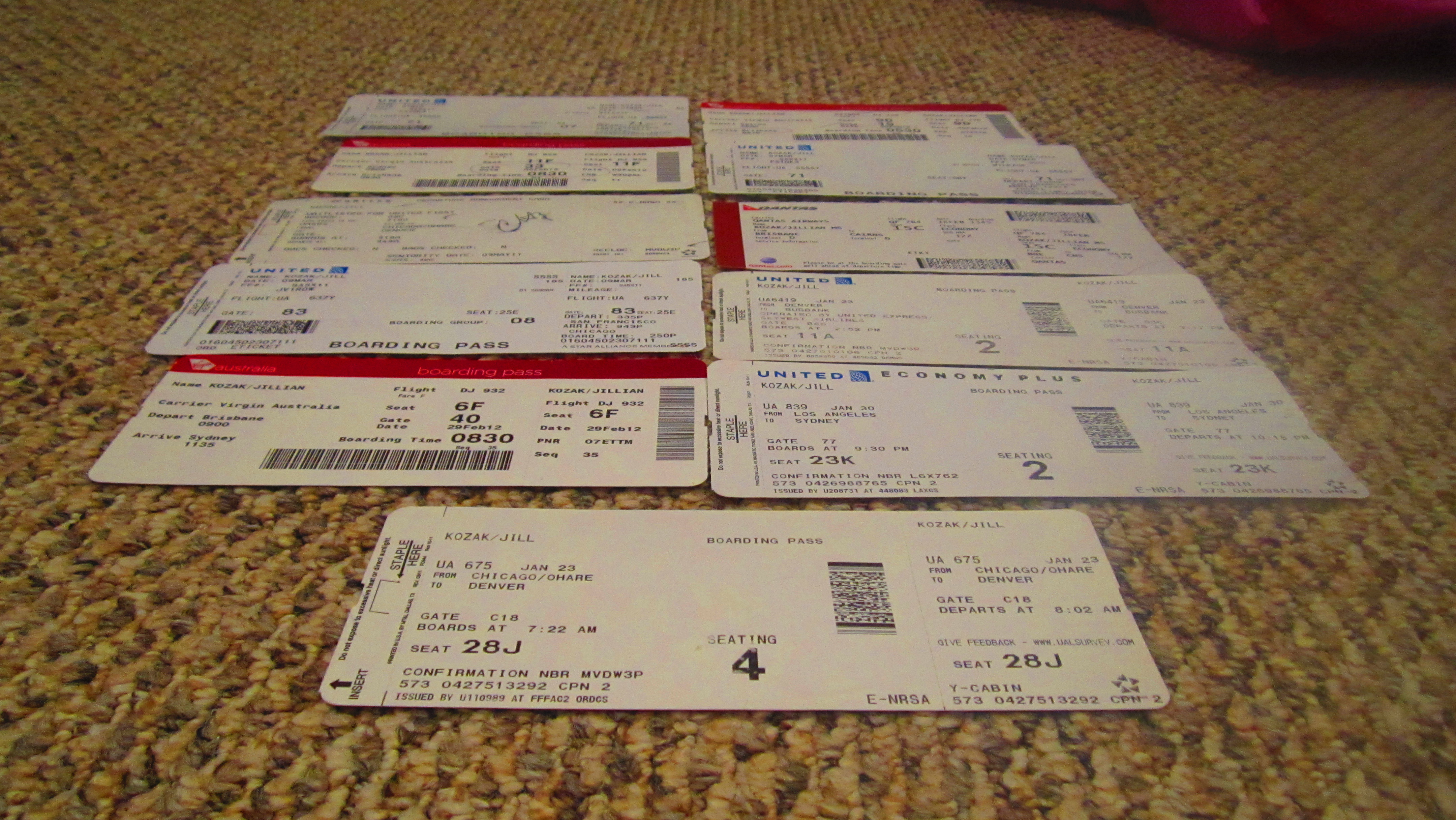 All of my boarding passes- accumulated from January-March 2012